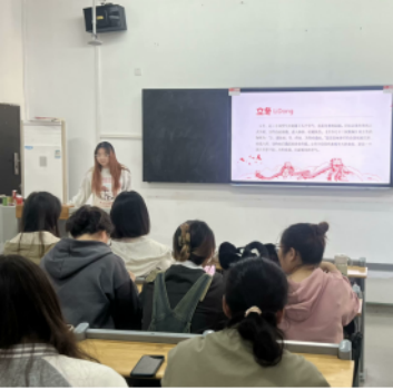 活动伊始,团支书许馨月娓娓向同学们讲述立冬文化。在源远流长的传统文化长河里,立冬不仅仅是季节更迭、气候变化的显著标志,更仿若一部无字史书,蕴藏着先辈们敬畏自然、顺应天时的深邃智慧。每一片立冬后悄然飘落的雪花,都似岁月的信笺,每一阵凛冽呼啸而过的寒风,宛如时光的长吟,它们在天地间低诉着古老岁月里那些被尘封的故事,让人不禁沉醉在对往昔的遐想之中。