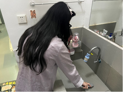 清洁整理组的同学一丝不苟,从擦拭门窗玻璃到清理洗手台死角,从扫地拖地到整理书桌杂物,不放过任何一个卫生盲区。灰尘与污渍在同学们的认真细致下无所遁形。
