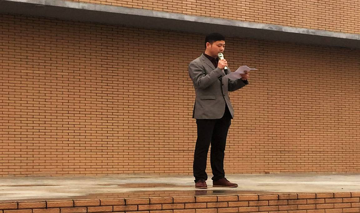 在国旗后的讲话中,传媒艺术学院副院长赵锐多次强调了珍惜时间的重要性,还点名表扬了播音专业的同学早起练声的活动,并号召其他同学以此为榜样,发扬主动学习的精神;还以自己的亲身经历——在大雾中迷路,告诉同学们应该找准自己的方向,时刻保持本心明白心之所向。
