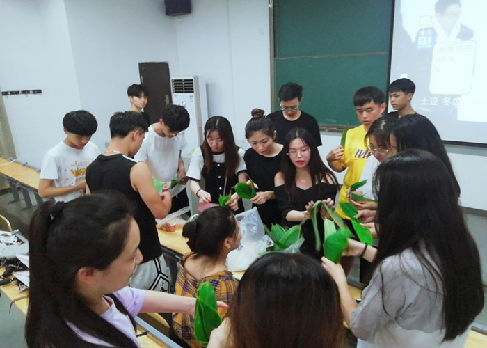 伴随着欢快的音乐,同学们发挥着自己的想象力,包出一个又一个可爱的粽子。播音2班刘倩同学说:“以前在家只见过奶奶包粽子,自己还没有亲手包过,这次班级举办的活动让我亲手体验了一次包粽子,实在太有趣了。”叶恒同学说:“原来看似小小的一个粽子包起来这么不容易,我们中国的传统美食让人赞叹,虽然在学校吃不到妈妈包的粽子,但是和同学们一起包粽子也有着满满的幸福感,导员和同学就像是我的家人一样。”