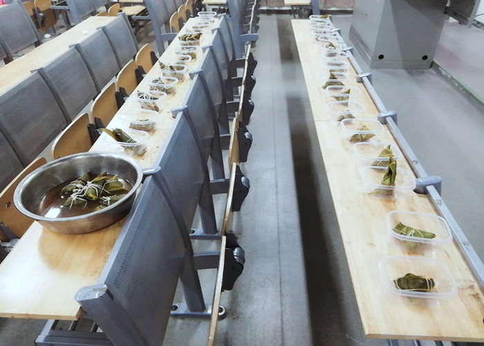 为了顺利包好粽子,班委提前一天买好了糯米,粽叶,猪肉,红豆等食材,6月5号晚上,辅导员和同学们便一起开始包粽子。由于各地饮食习惯不同,同学们包的粽子也都五花八门。