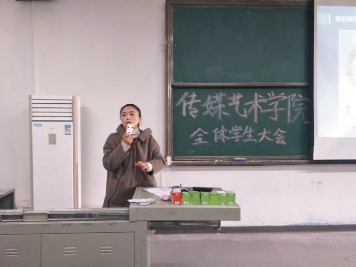 首先,分团委书记郭孟言老师讲话,详细说出了学生会这个学期的活动安排和规划,要求学生会在工作的时候要提前做好安排和与其他部门的沟通。