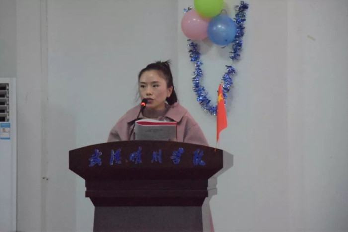 接下来是第七届传媒艺术学院学生会主席吴杨做学生会一学年的工作总结,她总结了上一届团委学生会在一学年的各项工作中取得的累累硕果,回顾了学生会每次活动中收获的感动与骄傲,她也对传媒艺术学院学生会的未来做出了期待与展望。