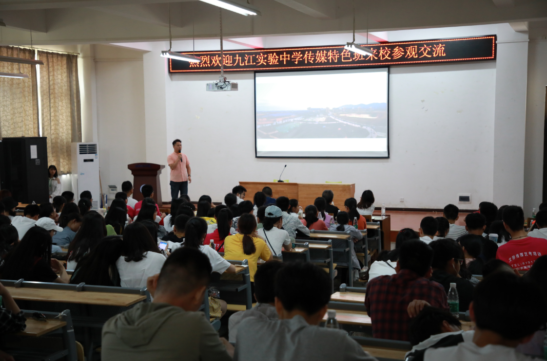 2018年6月7日星期四下午,九江实验中学传媒特色班来我校参观。参加此次活动的嘉宾有传媒艺术学院副院长叶同春教授、副院长赵锐老师、办公室主任黄蓉老师、编导系主任李国伟老师、播音系主任方志向老师、分团委书记郭孟言老师、实验室实验员闵润东老师。